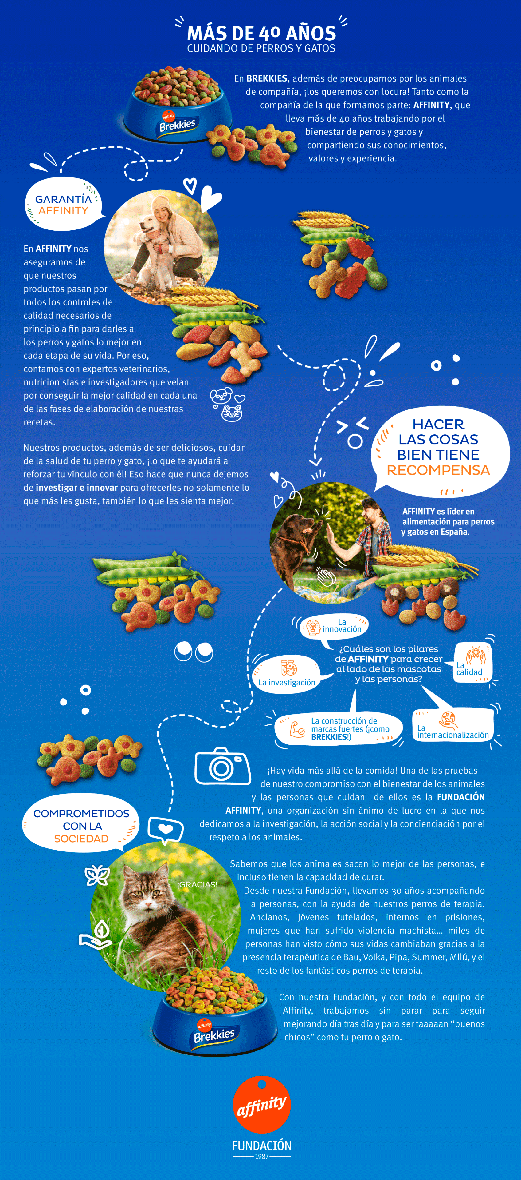 BREKKIES es una marca que pertenece a AFFINITY, una compañía con más de 40 años de historia y experiencia en la alimentación de perros y gatos. Nuestras recetas están perfectamente formuladas y cubren todas las necesidades nutricionales de tu perro o gato, además de cumplir todos los estándares marcados por la ley europea y por la FEDIAF (Federación Europea de la Industria de Alimentos para Animales de Compañía) y, igual de importante, ¡el paladar de tu compañero peludo!