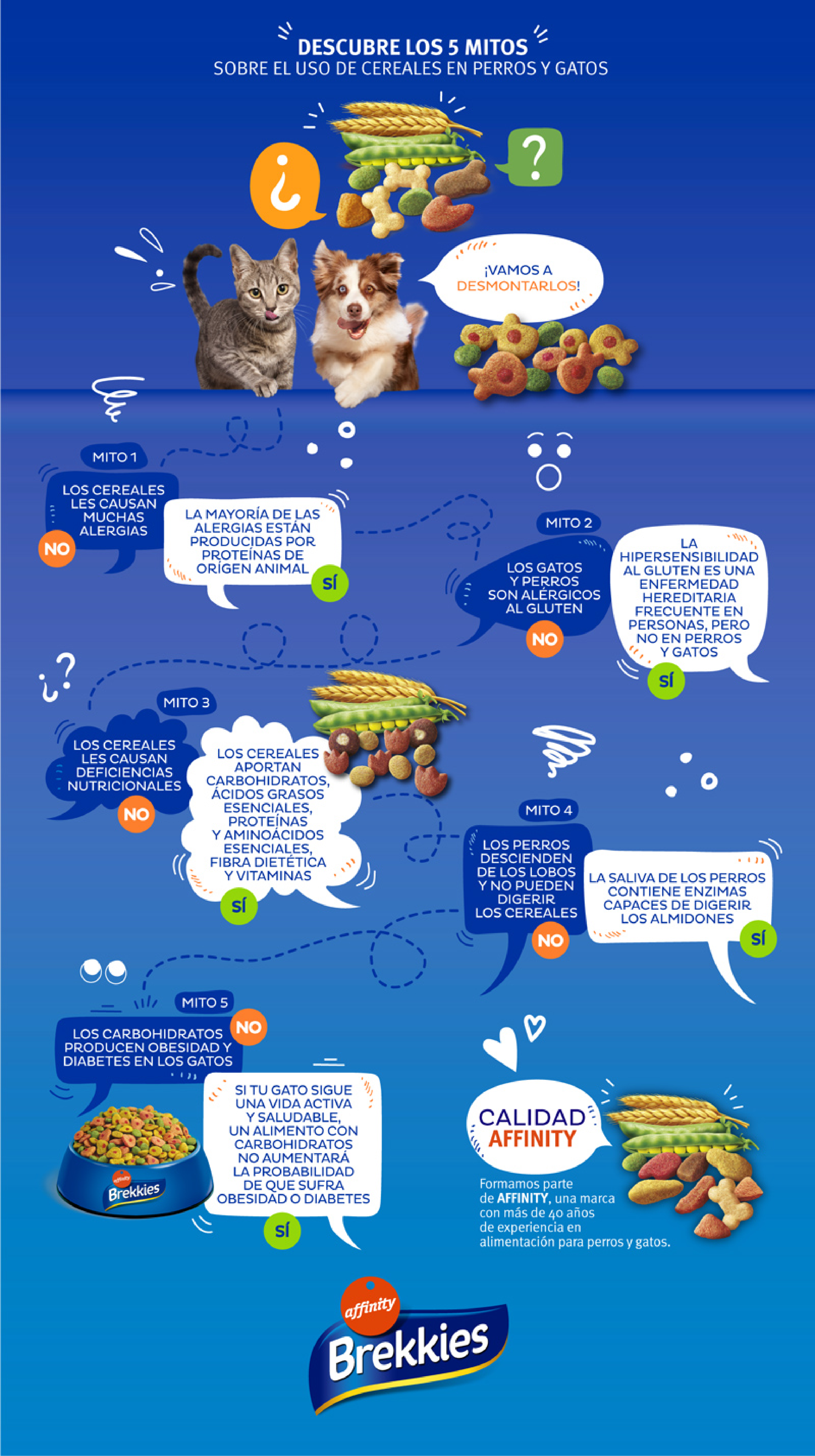 Existen muchos mitos sobre los efectos en perros y gatos de una dieta con cereales, pero realmente, ¿es buena o mala para ellos? A continuación, te contamos los beneficios de darle una alimentación con cereales a tu perro o gato y la comparamos con una sin cereales. Por supuesto, ambas basadas en productos de calidad y que cumplan con todas las regulaciones europeas. ¡Con la comida no se juega!